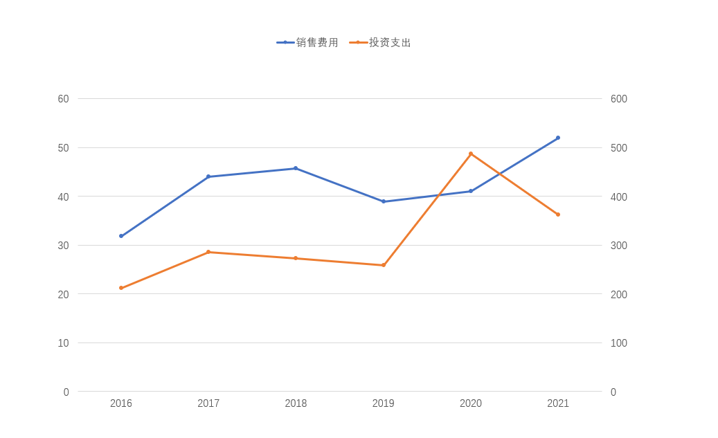(长城16年-21年销售费用&投资支出增长情况,亿元)