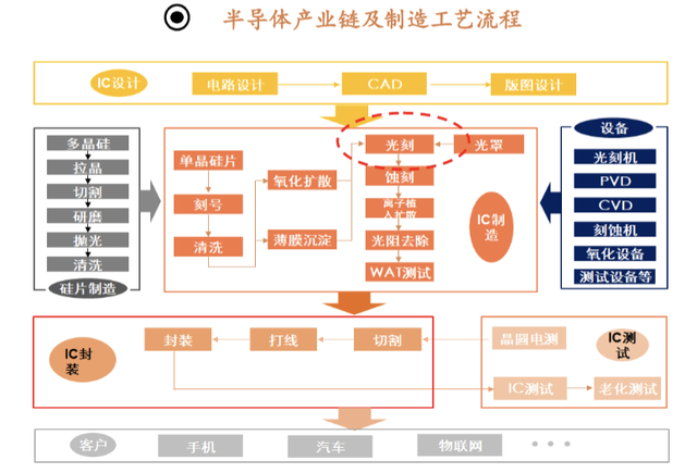 在整个芯片制造过程中可能需要进行数十次的光刻,光刻工艺成本占到整个芯片制造工艺的35%,耗时约占整个芯片生产环节的40%-50%,光刻胶材料总成本占比约为5-6%。