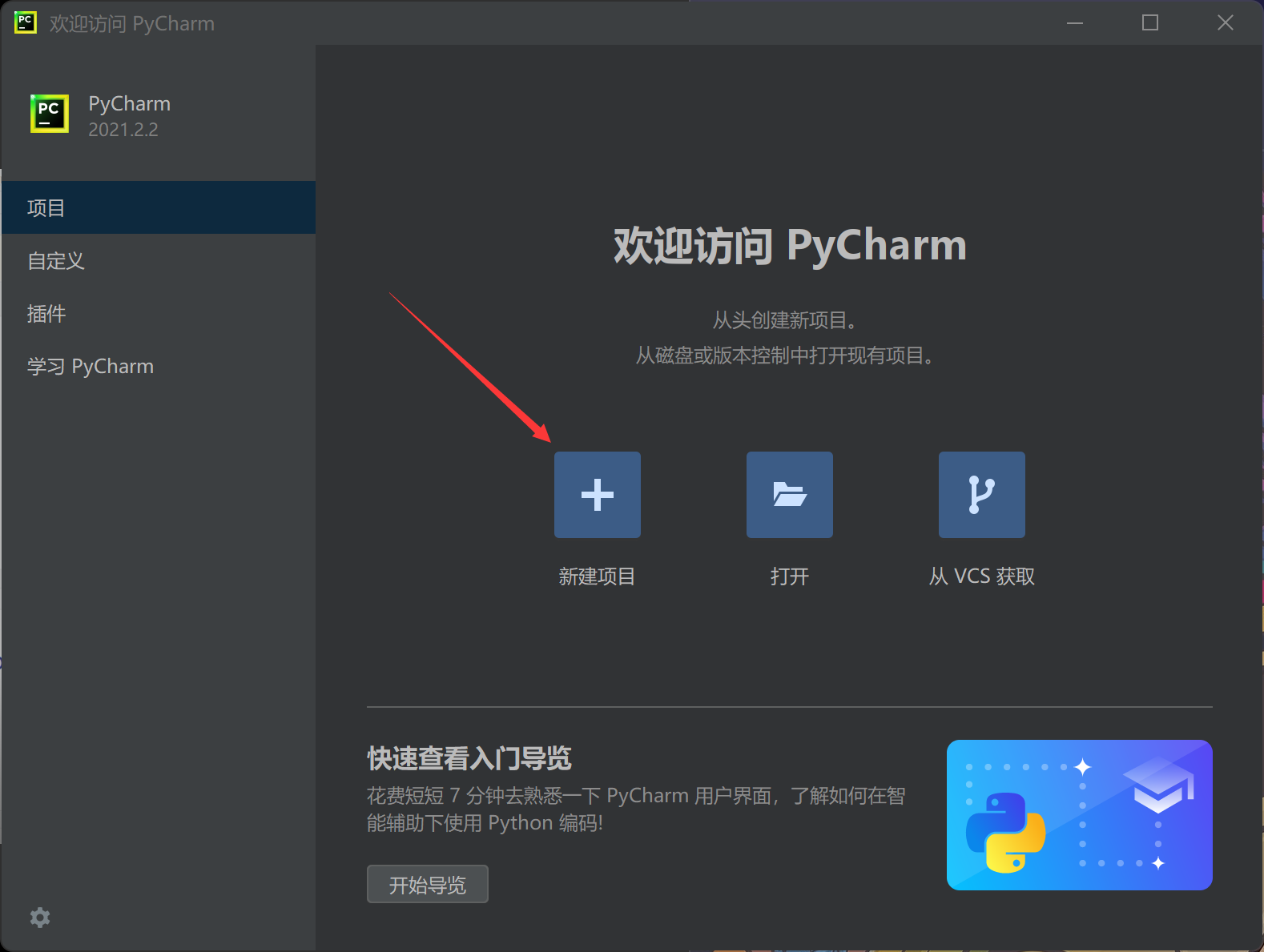 选择新建项目,也可以先查看入门导览学一些常用基本操作,熟悉界面功能