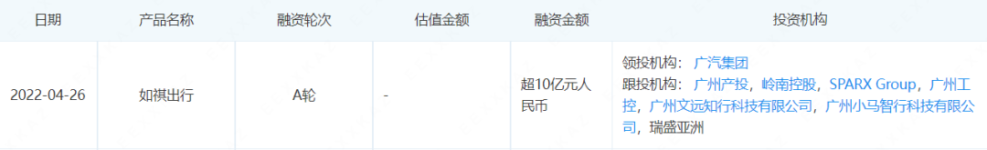 去年4月底,如祺出行宣布完成了一笔价值超10亿元的A轮融资,该轮融资由广汽集团领投,小马智行、文远知行、SPARX、岭南商旅集团、工控资本等机构参投。这笔融资也是其继2021年年底进行一轮融资后的新一轮资金进账。