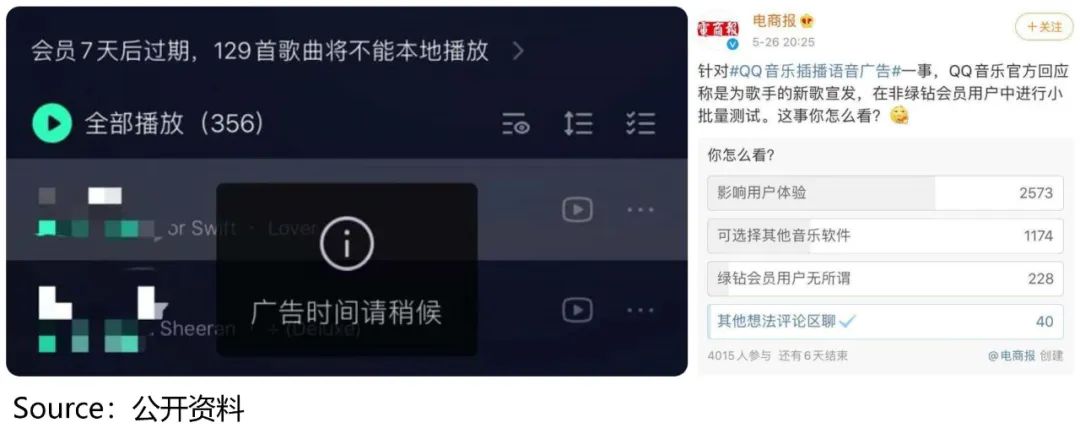 结果是,即便是当时小范围的测试,也引起了用户的强烈反感。社交平台上,大量用户表示要更换音乐APP,进行抗议。
