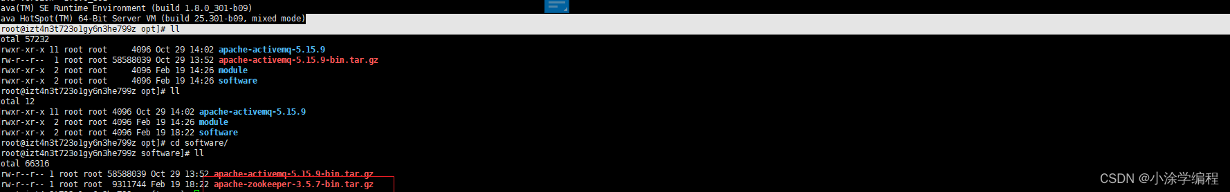 - 拷贝 apache-zookeeper-3.5.7-bin.tar.gz 安装包到 Linux 系统下