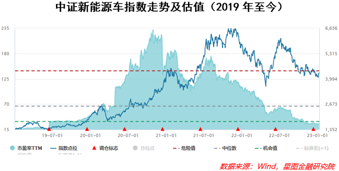 在经历了第一波的上涨后,新能源车指数从2022年开始走出了一个“N型”走势。从估值上看,截止2023年1月5日,中证新能源车指数估值约为28,处于近四年估值分位点13%附近,基本为开启本轮新能源车行情后的最低点。