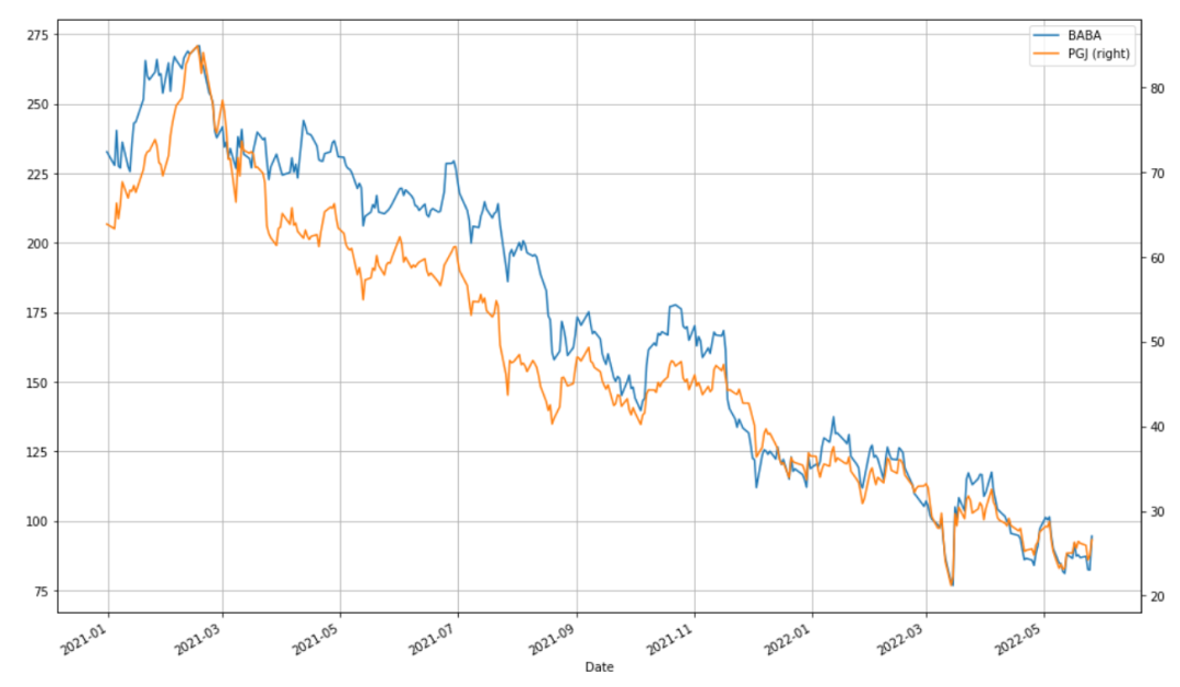 为客观对比,我们选择将阿里与Invesco Golden Dragon China的ETF基金(PGJ)进行对比,见下图