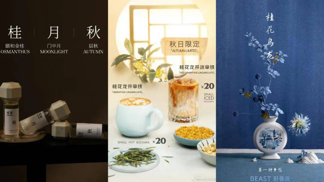 桂花,不仅将满觉陇这一城中村扶成网红,更在这两年拿下“秋季嗅觉顶流”的称号,成为大批新消费品牌研发新品的元素,其中不乏像野兽派、观夏、manner、喜茶等活跃在年轻人社交圈的品牌。