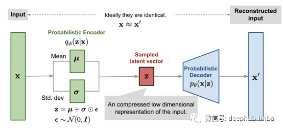 而VAE背后的关键点在于:为了从样本空间中找到能够生成合适输出的样本(就是能输出尽可能接近我们所规定分布的数据),它并没有试图去直接构造一个隐藏空间(隐藏变量所在的空间),而是构造了一个类似于具有编码器和解码器两个部分的网络: