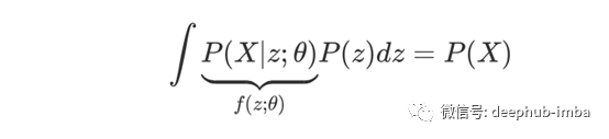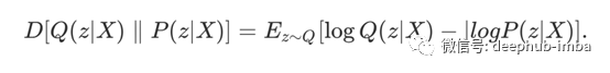 通过数学推导,我们可以把这个等式写成更为有趣的形式。对P(z|X)使用贝叶斯定律后,等式如下: