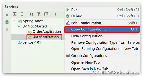 首先,复制原来的user-service启动配置:
