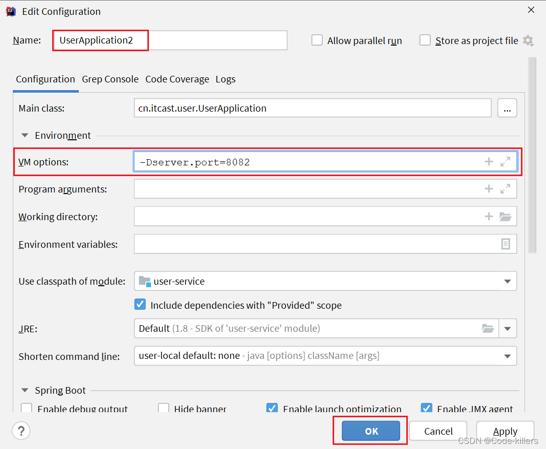现在,SpringBoot窗口会出现两个user-service启动配置: