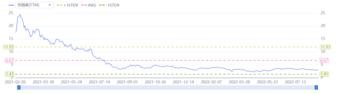 2)加速成长期,收入持续增长但增速放缓,PS估值开始均值回归;