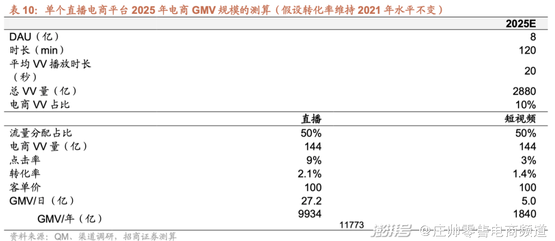 (单个直播电商平台2025年电商GMV规模的测算 资料来源:QM、渠道调研、招商证券)