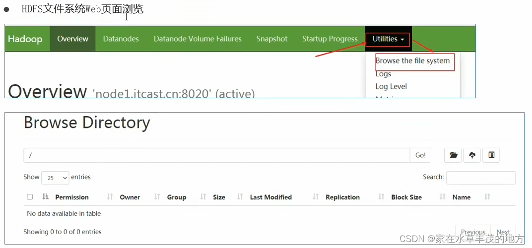 - HDFS 集群地址:http://node1:9870/