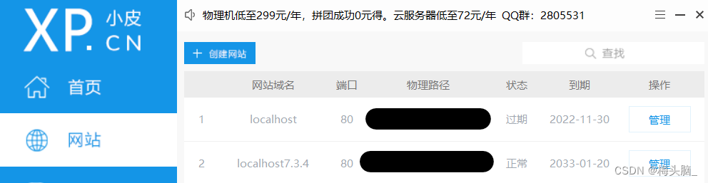 点击左上角再创建一个网站,重启apache服务就好啦~