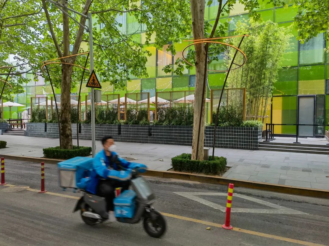 (2022年,三里屯附近忙碌的外卖小哥,市界拍摄)