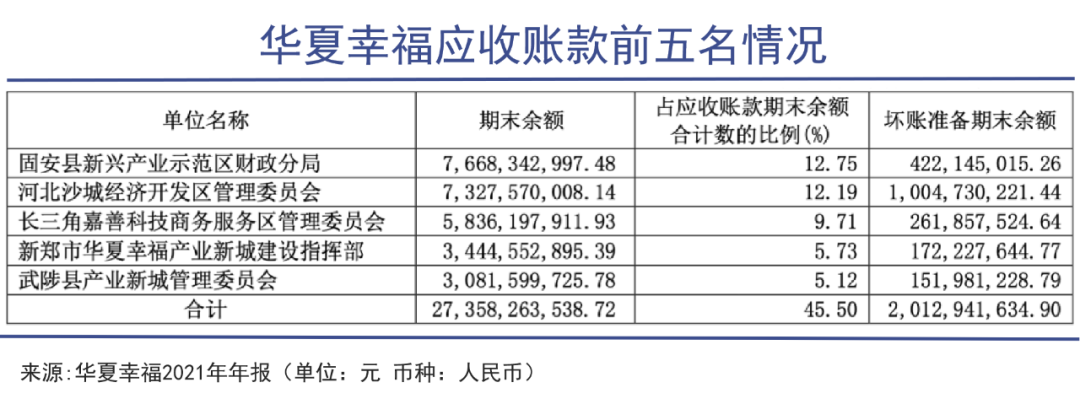 今年一季度,**华夏幸福应收账款高达547亿元,加上1324亿元的合同资产,几乎可以与其有息负债形成对冲。**