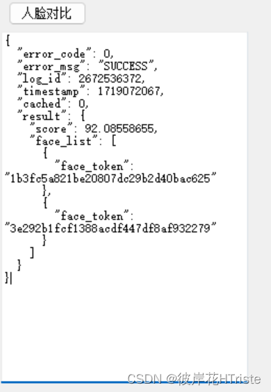 最重要的是,对比结果的相似度得分高达92.08558655,这是一个非常高的分数。这个分数表明我上传的两张照片中的人脸非常相似,几乎可以确定是同一个人。这不仅证实了系统的准确性,也让我对这项技术的可靠性有了更深的信任。每张照片中的人脸都有一个唯一的标识符,方便进行进一步的处理或查询。