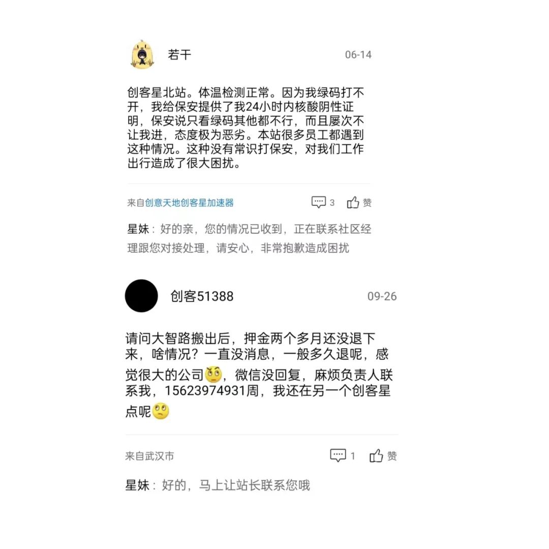 打开创客星APP,用户可通过APP连接空间内一切办公资源。在连接一切时,APP上也连接了一些用户的吐槽,一方面能够显示出OVU博大的胸怀,一方面可能真的无意、无力、无能解决用户真实问题,给予入驻用户应有价格的办公室体验。