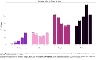 2017-2021年各品牌游戏主机销量|图片来源:Jack Soslow