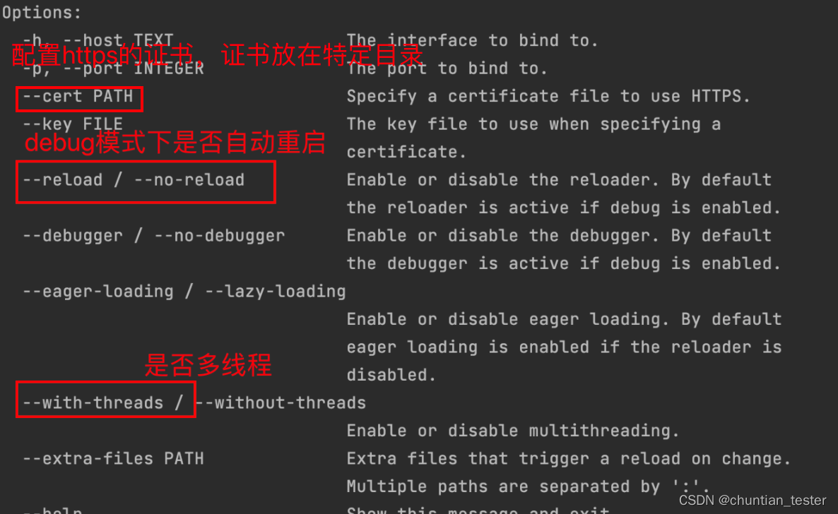 flask run --help: