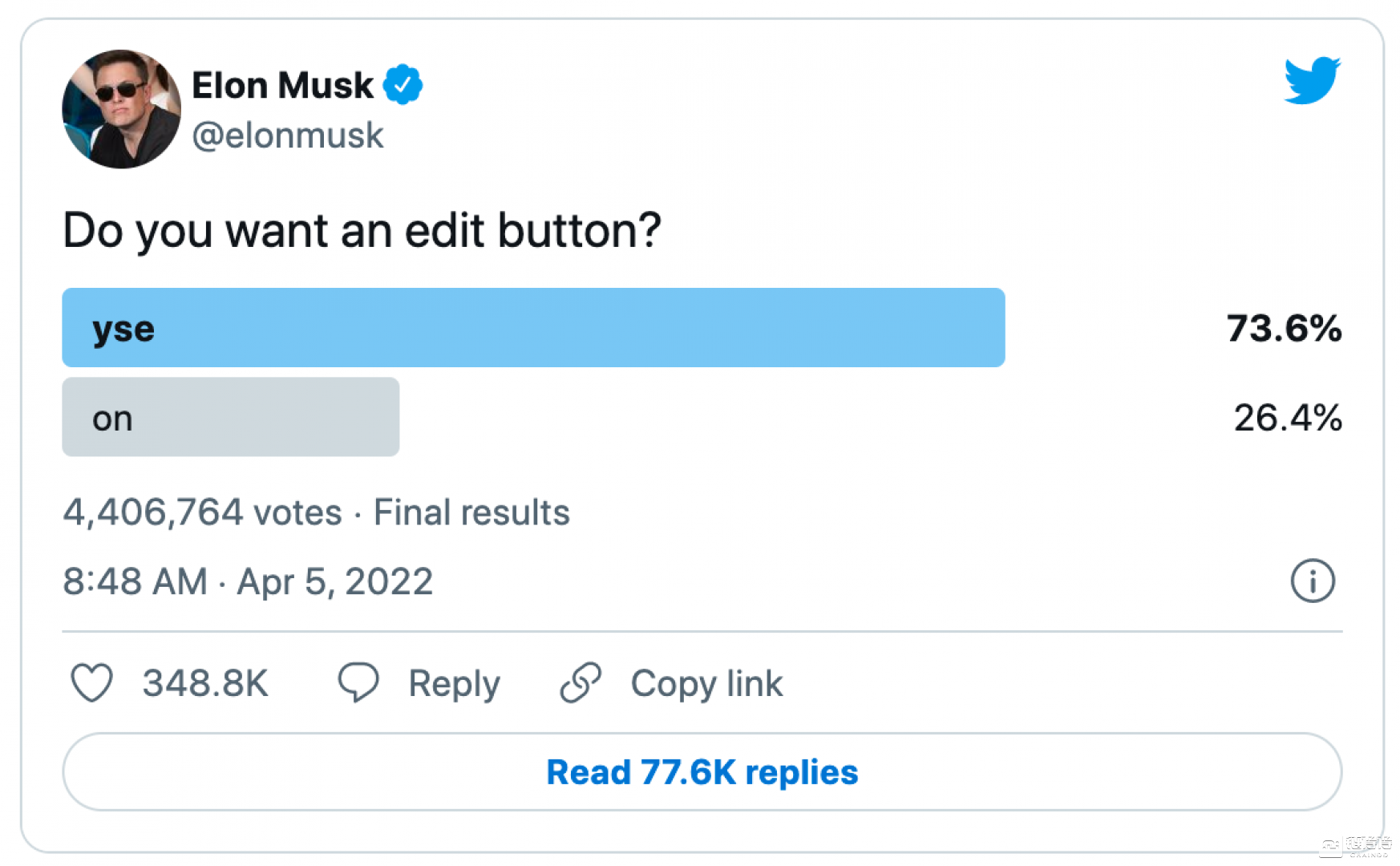 在马斯克的掌管下,推特注定会发生一些变化,编辑按钮正在考虑的选项之一。在本月早些时候成为持有推特 9.2% 股份的最大股东后,马斯克就发布了一系列推文,指出了引入这一功能的可能性。只有 Blue 的订阅者才能快速撤销发布的推文,他们在发布推文后有 60 秒的宽限期,可以选择在被任何人看到之前将推文删除。推特随后也发文证实,公司一直在考虑添加编辑按钮的想法。