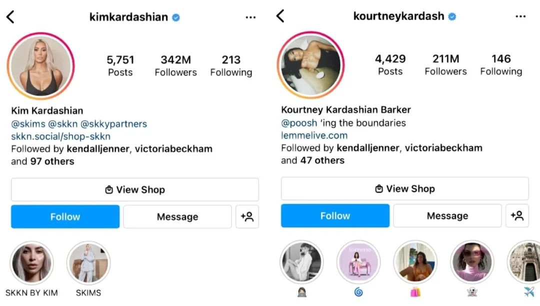 卡戴珊家族的Instagram账号几乎都开了店铺