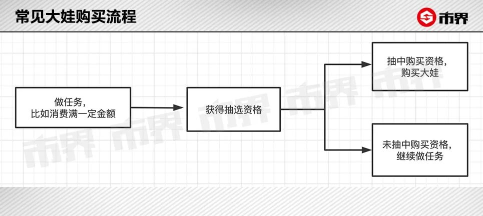 就泡泡玛特而言,为了获得购买大娃的机会,玩家可能不得不先买一些盲盒。