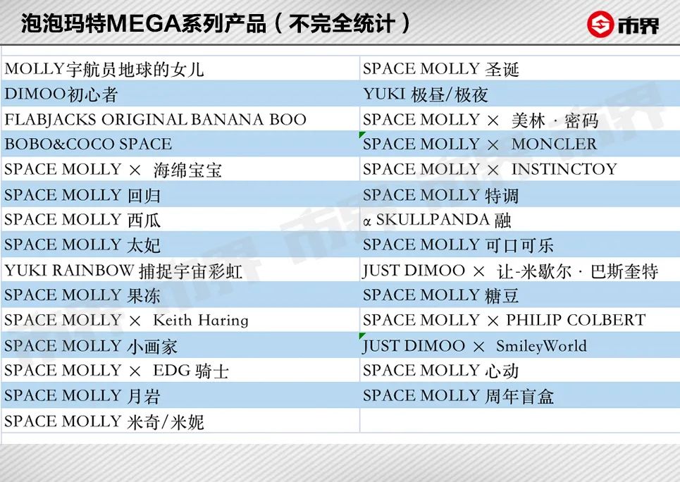 市界从泡泡玛特官方公众号及年报统计,至今其共发售MEGA系列潮玩至少有29款。据泡泡玛特近期的一份会议纪要,MEGA产品线2022年上半年的收入已经超过了2021全年。