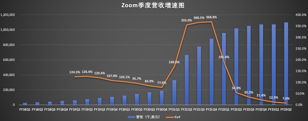 需要提醒的是,报告期内的总营收,低于此前公司上一季度给出的11.15~11.20亿美元的收入预期,报告期内,季度营收同比仅增长7.6%,低于上一季度的12.3%,该公司已连续六个季度营收增速放缓,由此不难看出,Zoom疫情爆发期间的高增长一去不复返了。