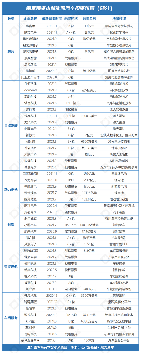 目前来看,小米通过投资和并购,已经完成了三电系统、视觉传感器、激光雷达、芯片、自动驾驶解决方案、车载智能产品、智能座舱等造车核心领域的布局。