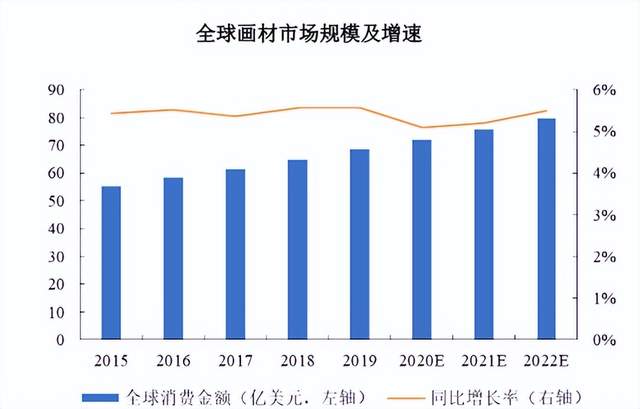 总体而言,全球画材市场整体处于稳定增长的状态,中国画材市场规模较快增长,有利于我国画材企业业绩规模的持续发展。