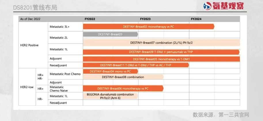 另外,DS-8201还在蓄势向HER2阳性乳腺癌的一线疗法进发,试图覆盖乳腺癌治疗全流程。