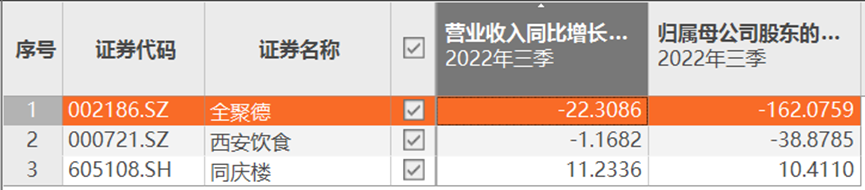 横向对比看,今年前三季度,申万三级行业餐饮业中,西安饮食和同庆楼的营收同比分别为-1.16%和11.23%,归母净利润同比分别为-38.87%和10.41%,情况都远比全聚德要好。