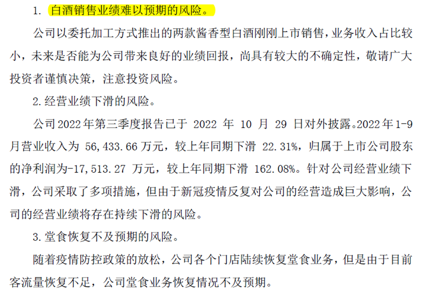 全聚德同时提醒,这两款酱酒刚刚上市销售,业务收入占比较小,未来是否能为公司带来良好的业绩回报,尚具有较大的不确定性。