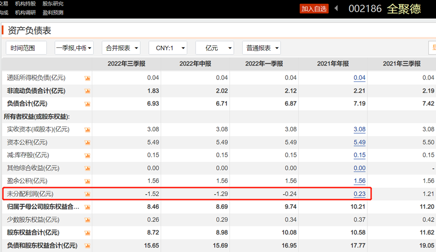 持续的亏损下,全聚德的未分配利润也在今年一季度起由正转负。