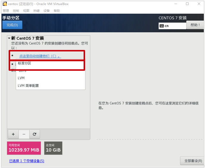 下拉选择“标准分区“,然后点击”点击这里自动创建他们“。
