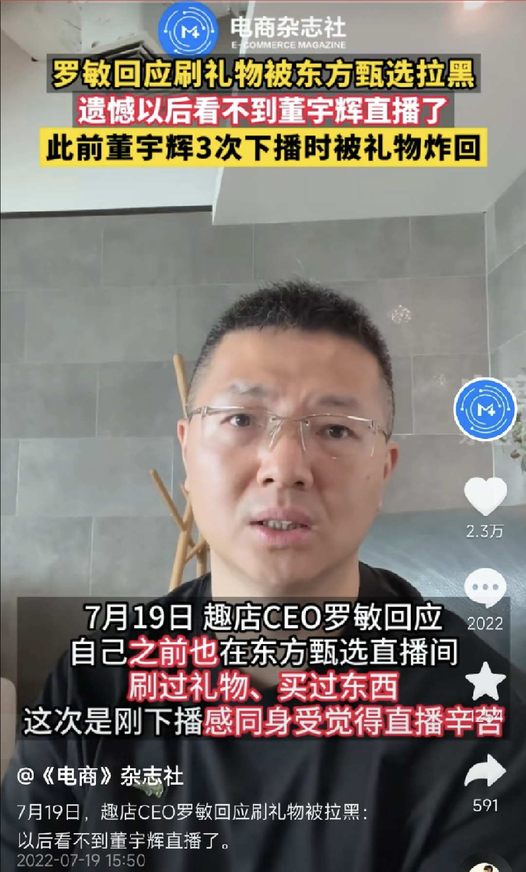 趣店罗老板对被董宇辉拉黑表示十分遗憾