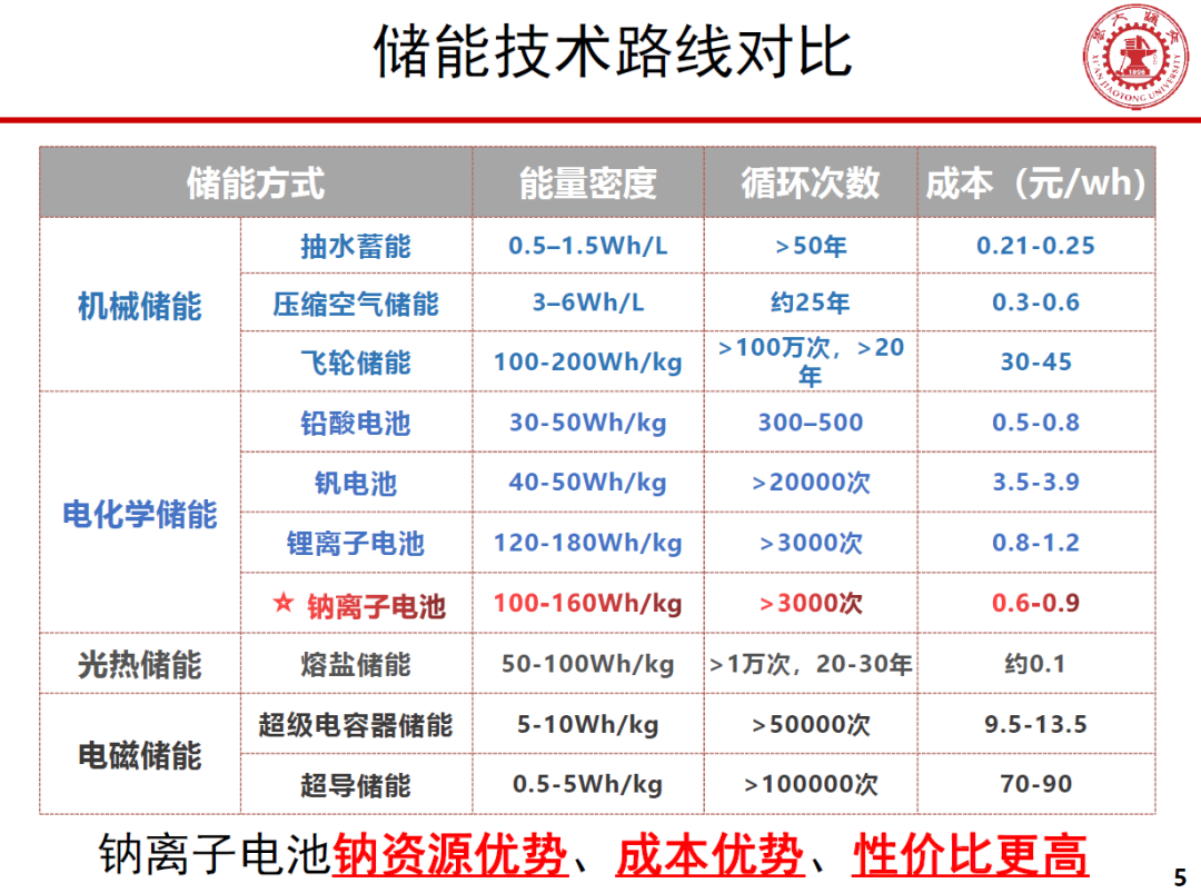 这三条路线各有优劣:比如层状氧化物理论比容量比较高,合成工艺比较简单,但由于钠离子层状比较大造成之间间距比较大,成空气稳定性比较差,材料表面的材检问题需要关注;离子化合物循环寿命较长,且工作电压高,所以比较适合在储能领域应用,但能量密度相对低一些。