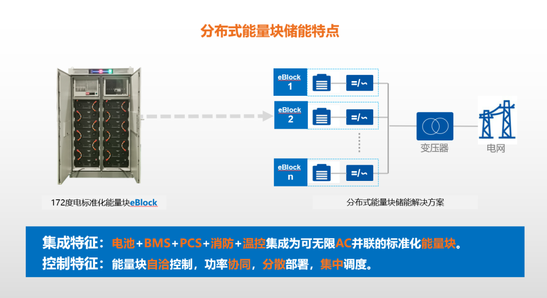 分布式能源块是将逆变器、电池簇、EMS、BMS等所有功能子单元都集中到一个单独的小机柜里,大组串有的优势它都有,而且布置更加灵活,只是因为现在供应链体系不够成熟,成本上有劣势,但未来前景值得期待的。
