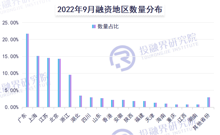 疫情等因素影响的不仅仅是全国经济的总量,我国各地区的创投市场在多变的局势中也出现微妙的变化。9月,公开披露成功融资案例数量排名前五的地区是广东、上海、江苏、北京和浙江。