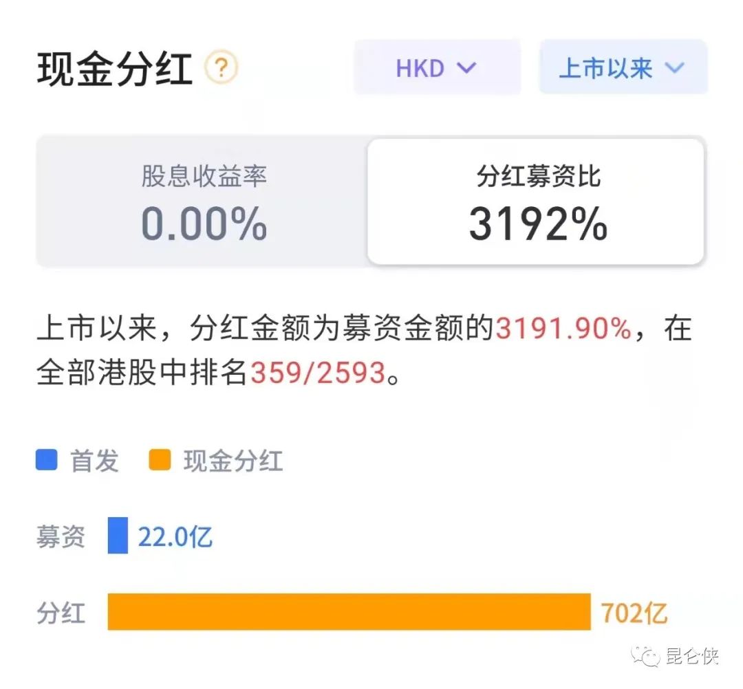分红方面,公司自上市以来共计募资22亿,现金分红702亿,再加上去年底分的1025亿京东股票,合计分红1727亿。考虑到IPO发行了25%的新股,也就是说二级市场投资者作为一个整体的话,可以分到1727*0.25=432亿元,远高于公司多年来“圈走”的22亿。