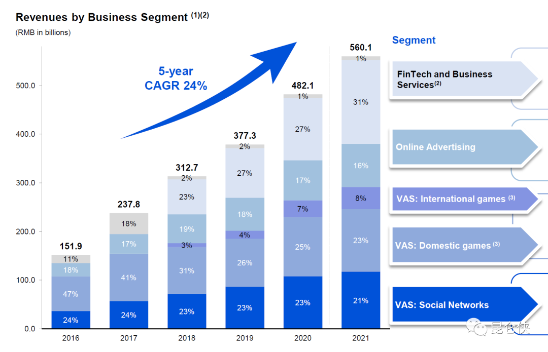 腾讯的第三级火箭就是它最终承载的商业闭环, 利用微信和QQ巨大的流量,从游戏、腾讯音乐/视频会员服务、广告等获得经营利润。