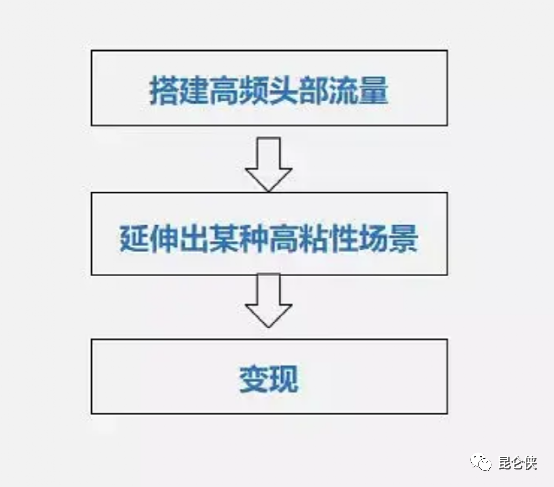 三级火箭模式通常分为 3 个步骤:第一级,搭建高频头部流量;第二级,沉淀某类用户的商业场景;第三级,完成商业闭环,变现。