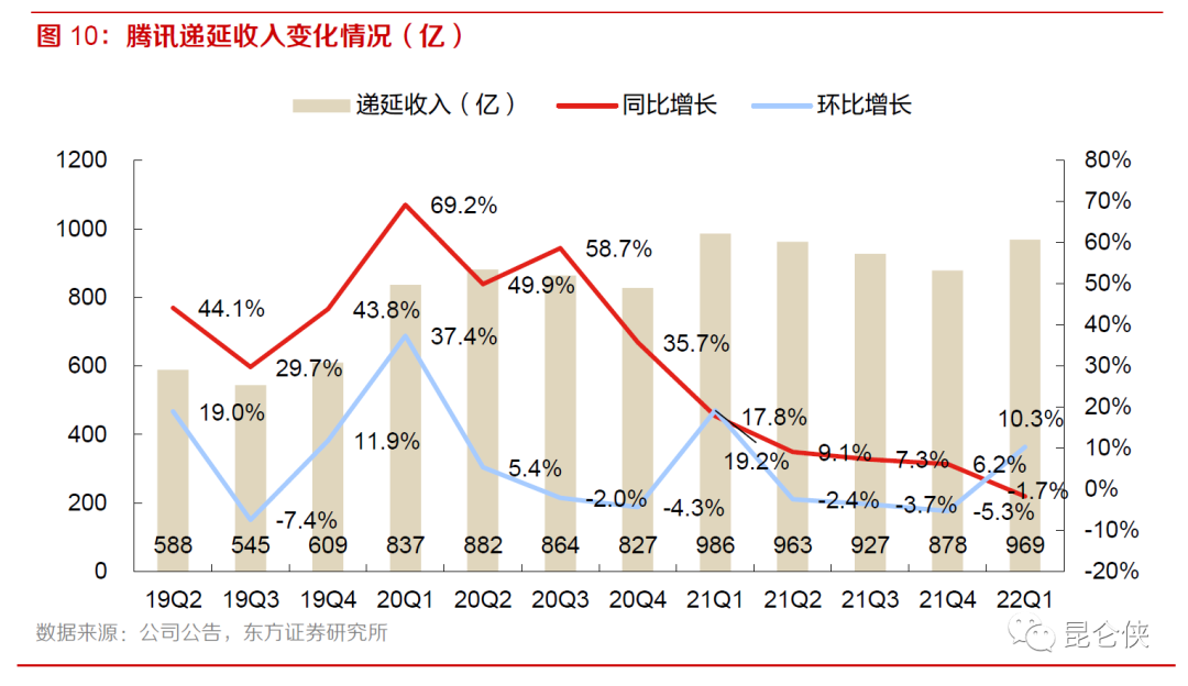 而同样的遭遇在腾讯身上也在上演,2022年1季度,腾讯历史首次出现营收零增长的情况,公司净利润同比下降23%,持续三个季度下滑(2021Q3、2021Q4、2022Q1),2022Q2由于疫情原因大概率比Q1还要差。