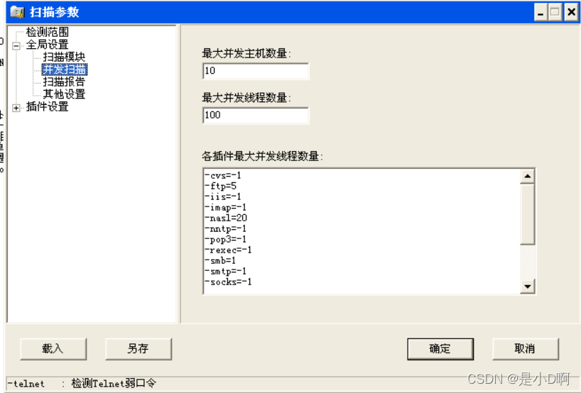 并发扫描:设置并发扫描的主机和并发线程数,也可以单独为每个主机的各个插件设置最大线程数。