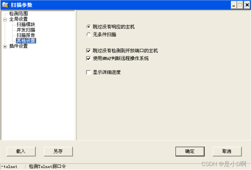 漏洞检测脚本设置:可以选择相关的漏洞检测脚本,漏洞脚本以NSL为后缀名。
