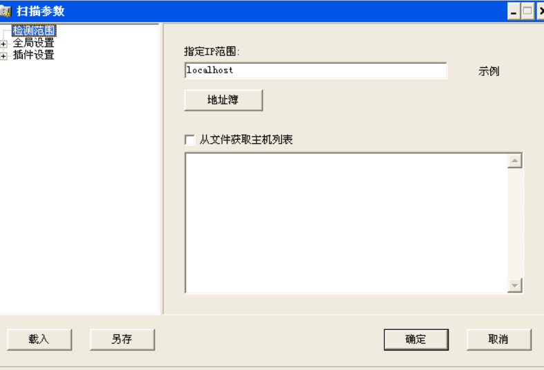 点击【扫描参数】按钮,或选择【设置】->【扫描参数】打开扫描参数对话框,在这里设置X-scan的扫描参数,包括:检测范围、全局设置、插件设置。