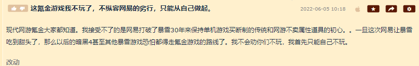 有玩家直接指责了暴雪的立场,表示“曾经的传奇工作室暴雪竟已沦落到制作赌博游戏的地步,真是可耻。”