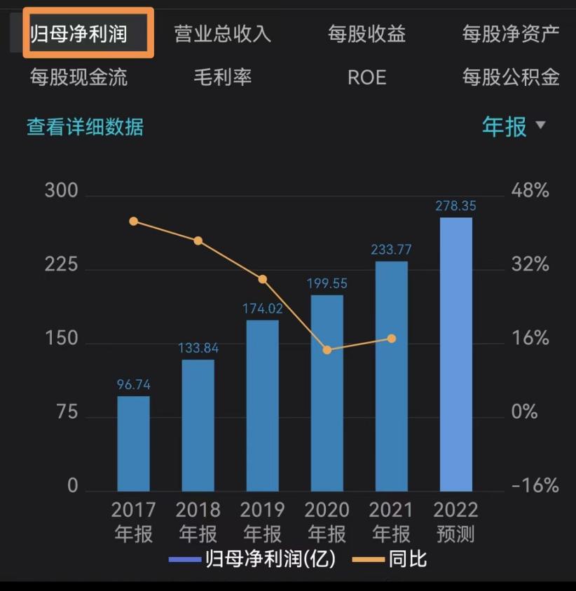 五粮液近几年净利润走势及2022年净利润预测,来源于wind数据