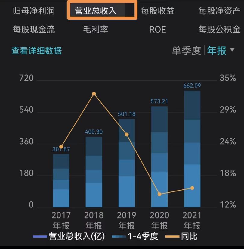 五粮液近几年营收走势,来源于wind数据