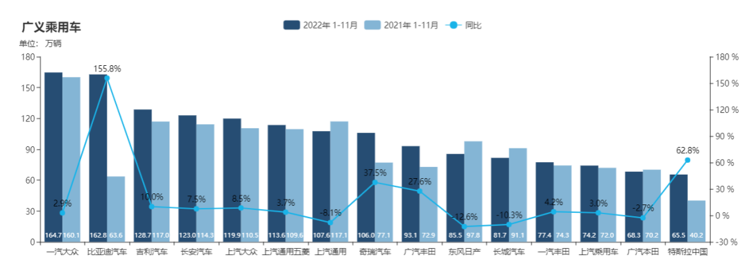 据乘联会数据显示,去年前11月位列中国乘用车销量排行榜第八的长城汽车今年已经跌出前十。